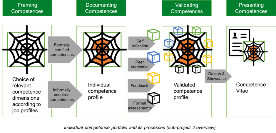 - Validation is essential to ensure the credibility of competence profiles. The project thus investigates how the reliability of documented competences can be guaranteed.